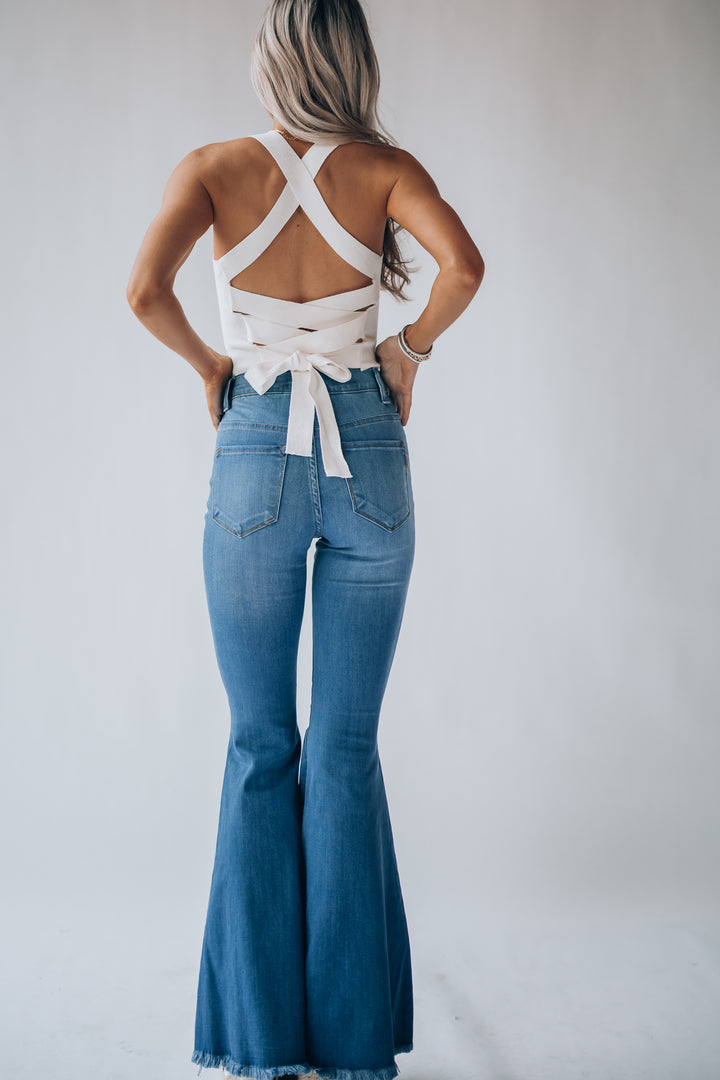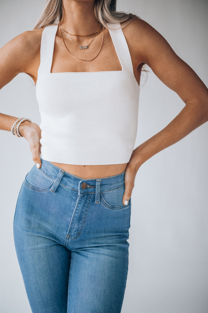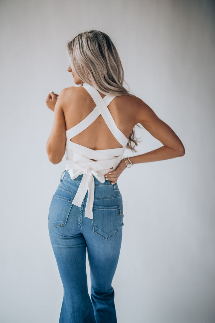 Elegant in the front, playful in the back! Our ‘Heartbreaker Knit Crop Top’ is an upgrade to your Summer wardrobe. This knit top fits snugly throughout with adjustable straps and criss cross open back. The corset lace up with waist tie in the back finishes this sassy look off!