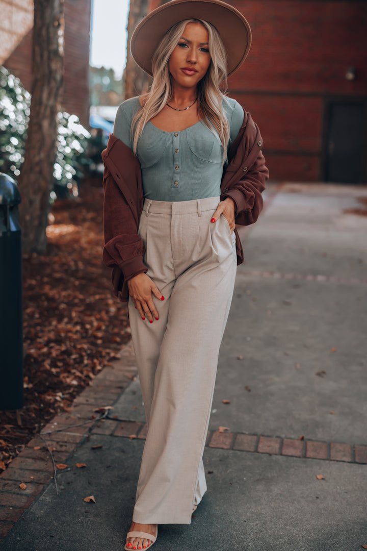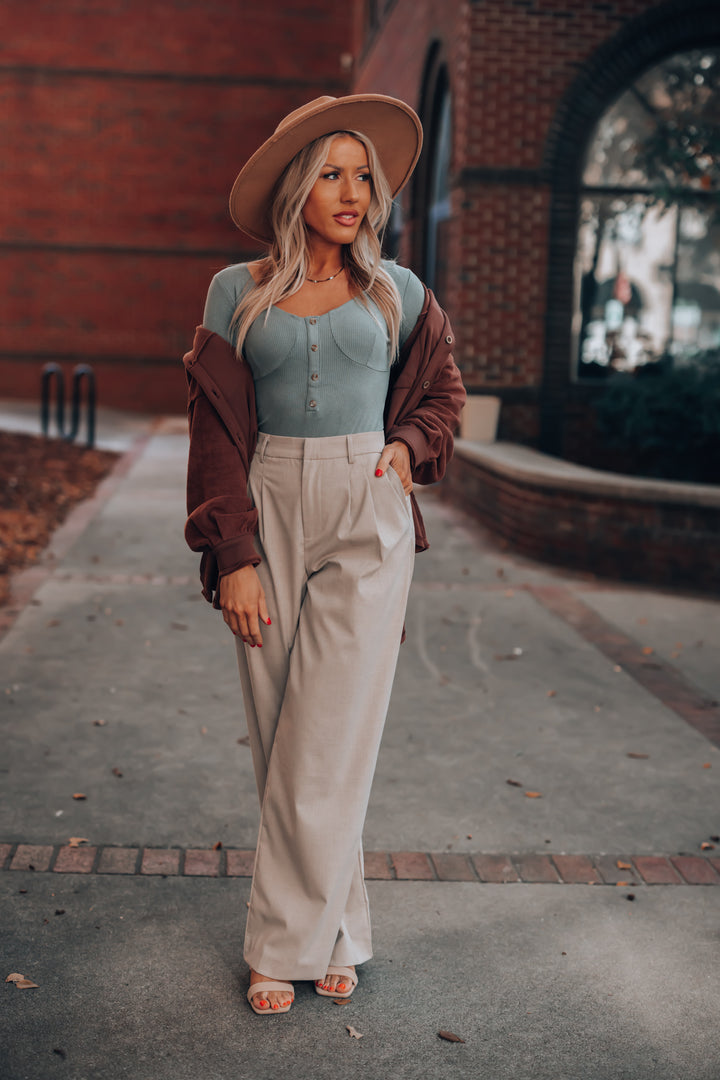 - Functional Wood Button Up Front